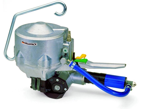 · 氣動馬達束緊與咬扣,適用曲面包裝物(如管材、鋼卷等)打包。